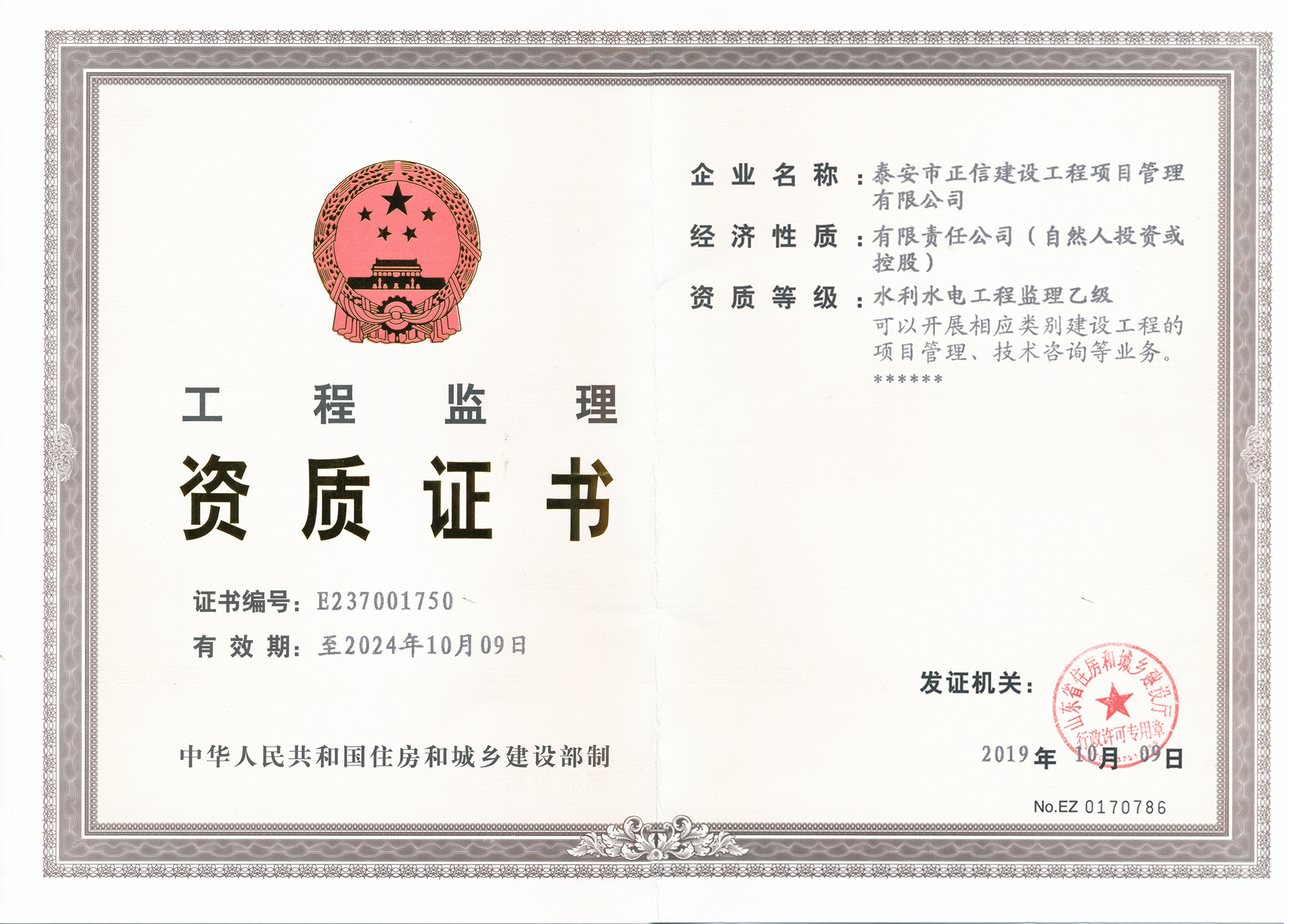工程監理資質證書